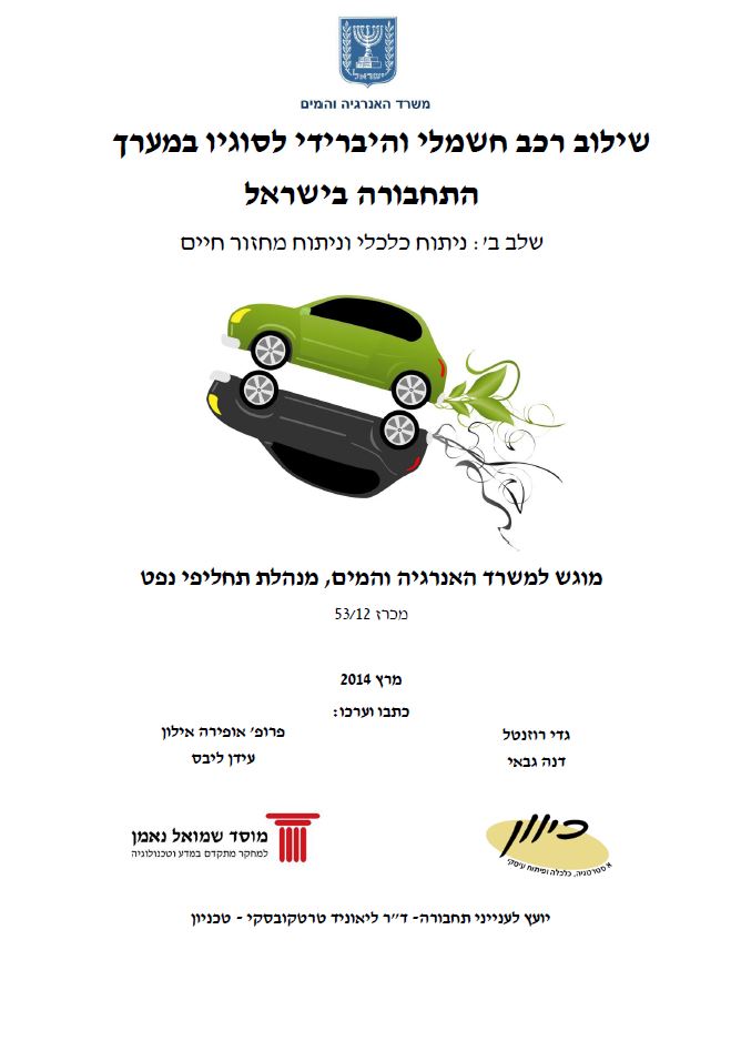 מסמך זה הינו שלב ב’ בעבודה ועניינו ניתוח כלכלי ראשוני וניתוח מחזור חיים של שימוש בטכנולוגיות ובמערכות ההנעה השונות בישראל.