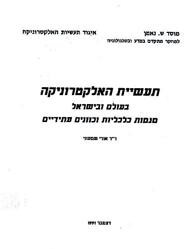 הדו”ח הנוכחי נערך כצעד ראשון בהערכות מוסד ש. נאמן לקראת התוכנית “אלקטרוניקה 2000″. מוצג בדו”ח לוח הזמנים להערכות זו ומובאת סקירת עובדות על המצב וההתפתחות של התעשייה האלקטרונית בעולם ובישראל. כמו כן מוצגת סקירה על נושאי טכנולוגיה ומוצרים עתידיים, במגמה לבדוק אותן טכנולוגיות אשר מצדיקות מאמץ לאומי לביסוס התשתית שלהן. סקירת התעשייה האלקטרונית העולמית מציגה מגמות של התפתחות בייצור ובשיווק האלקטרוני של גושי העולם הגדולים, אירופה, ארה”ב, יפן ו”שאר העולם”, במהלך השנים האחרונות. בניגוד לשיעור הגידול הקטן של התל”ג העולמי התפתחה האלקטרוניקה בקצב מהיר ביותר. ההתפתחות של הייצור והשיווק של גושי העולם העיקריים במהלך השנים האחרונות מתוארת במפורט וכמו כן מתוארת התפתחות המגזרים השונים של התעשייה האלקטרונית. הסקירה גם מביאה נתונים על המאזנים המסחריים של גושי העולם השונים בינם לבין עצמם וכן על חלוקת השליטה על התעשייה האלקטרונית בכל גוש. סקירת התעשייה האלקטרונית הישראלית כוללת מגמות של התפתחות בייצור ובייצוא האלקטרוני של מדינת ישראל בהשוואה לכלל התעשייה הישראלית. מובא גם סיכום של מספר המועסקים בתעשיית האלקטרוניקה הישראלית במהלך השנים האחרונות ועל גודלו של הייצור לעובד. מסתמן גידול משמעותי בייצוא האלקטרוני יחסית לייצוא הכללי. מסתמנת, כמו כן, עלייה ניכרת בסך הייצור לעובד, וזו מושווית עם ממוצעים בתעשייה האלקטרונית של ארה”ב. מובא גם מידע אודות החלק היחסי המושקע במו”פ בתעשייה האלקטרונית הישראלית ובתעשייה של ארה”ב. בנושא הטכנולוגיה מובאת סקירה על כיווני התפתחות אפשריים וצפויים של מוצרים אלקטרוניים עתידיים, בהתאם לתחומים השונים שאותם משרתת האלקטרוניקה. הקשר בין מוצרים שונים לטכנולוגיות התומכות בהם מוצג באמצעות טבלות הצלבה בהן רשומות הטכנולוגיות במאונך ואילו מוצרים שונים מפורטים באופן אופקי. כאמור, המטרה היא לגלות אותן טכנולוגיות מפתח שראוי לתמוך בהן בעתיד תוך מאמץ לאומי, על מנת ליצור בסיס למוצרים חדשים שיאפשרו לתעשיית האלקטרוניקה הישראלית להרחיב את שווקי הייצוא. לסיום הסקירה הטכנולוגית מובאת תחזית על שיעור הגידול הצפוי של ביקוש לרכיבים אלקטרוניים באירופה על פי תחומים בהם צפוי גידול ניכר של הייצור.