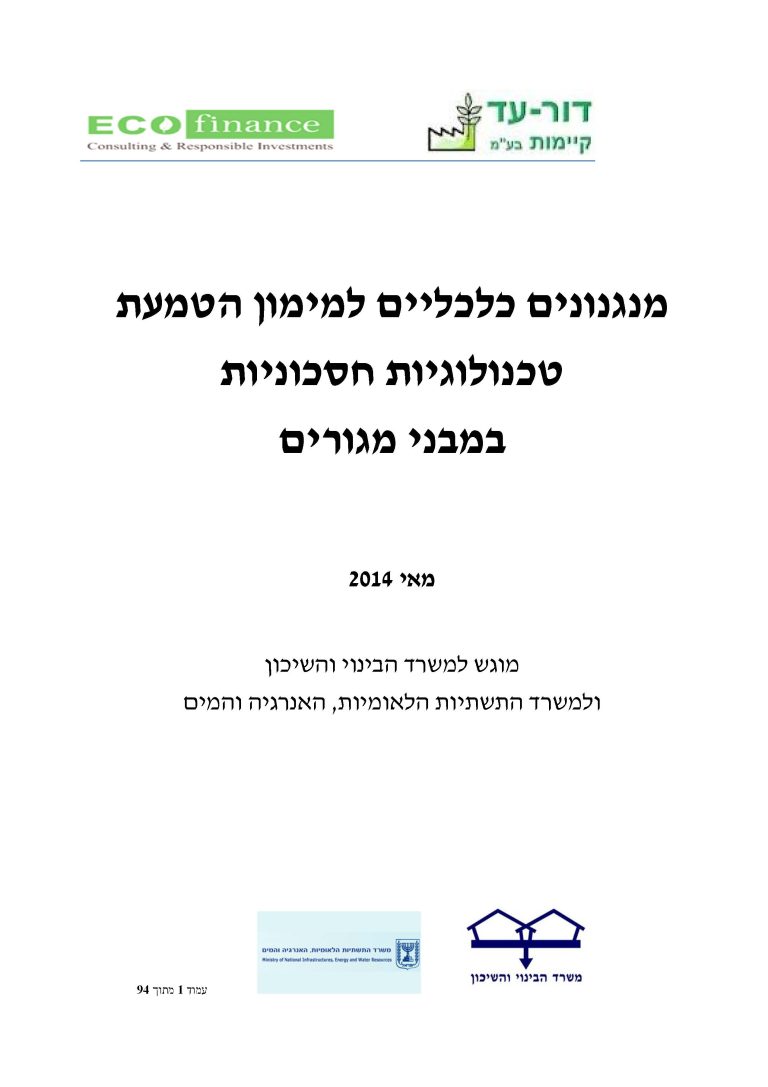 In this study, a series of economic mechanisms was formulated. These will encourage integration of technologies and means of saving energy in residential buildings and help reduce maintenance costs for households and help them cope better with the cost of living.