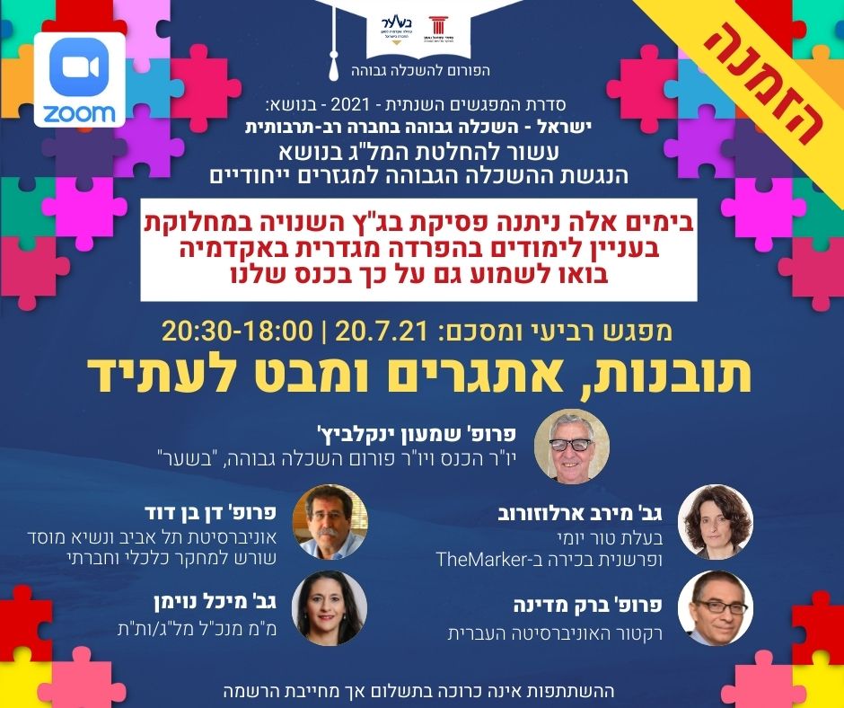 The fourth and concluding session discusses insights and challenges and the future of higher education in multicultural society in Israel in various aspects: social, educational, economic, systemic, institutional, and occupational.