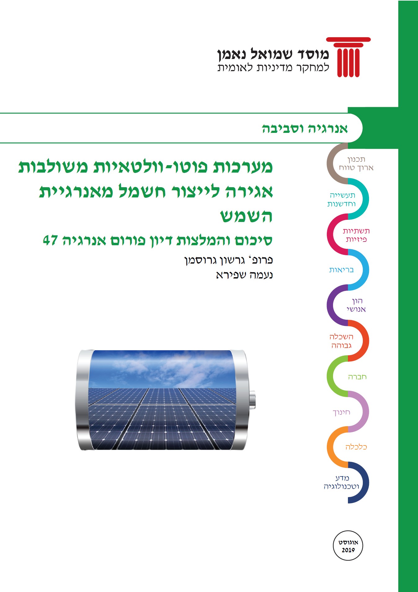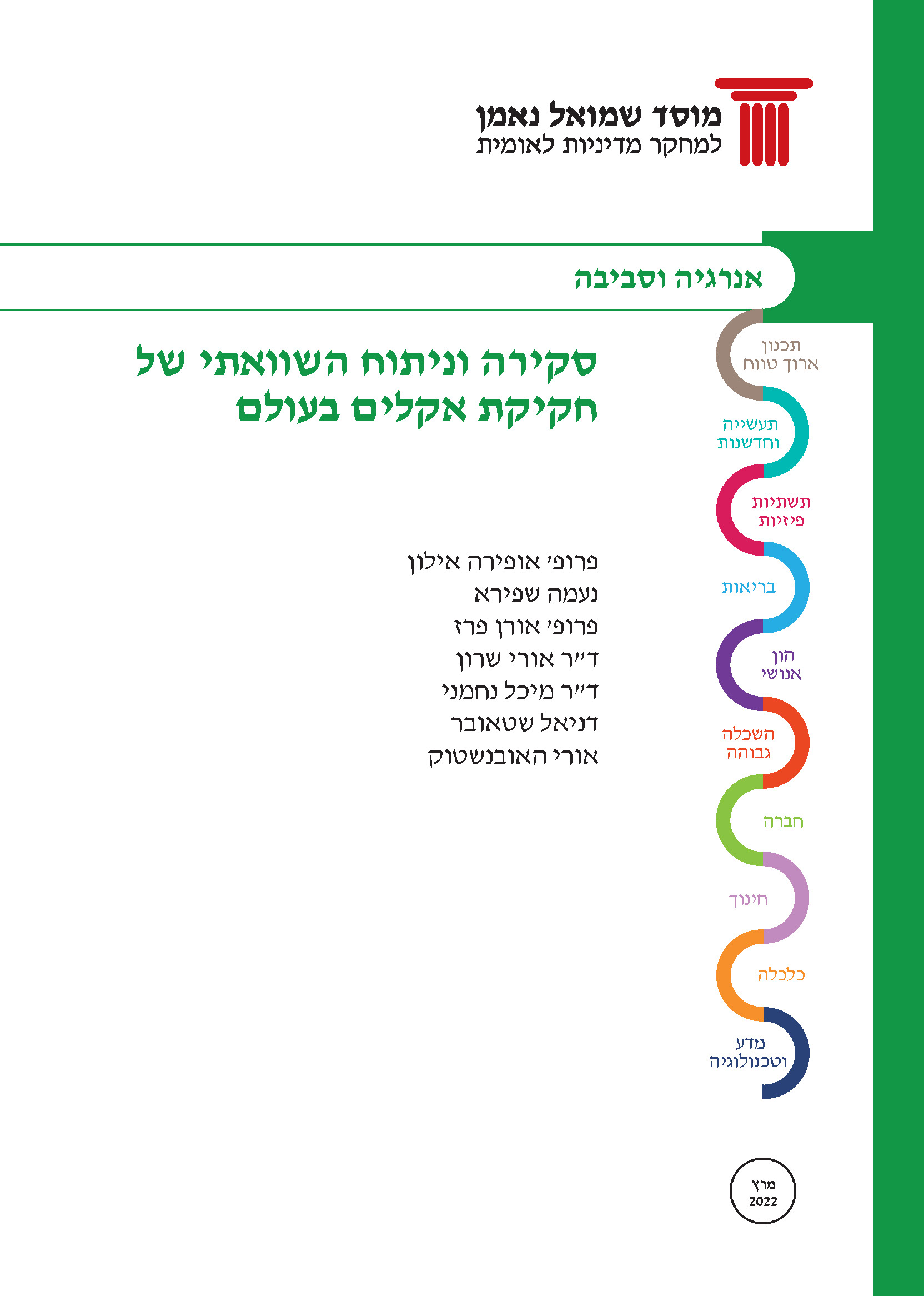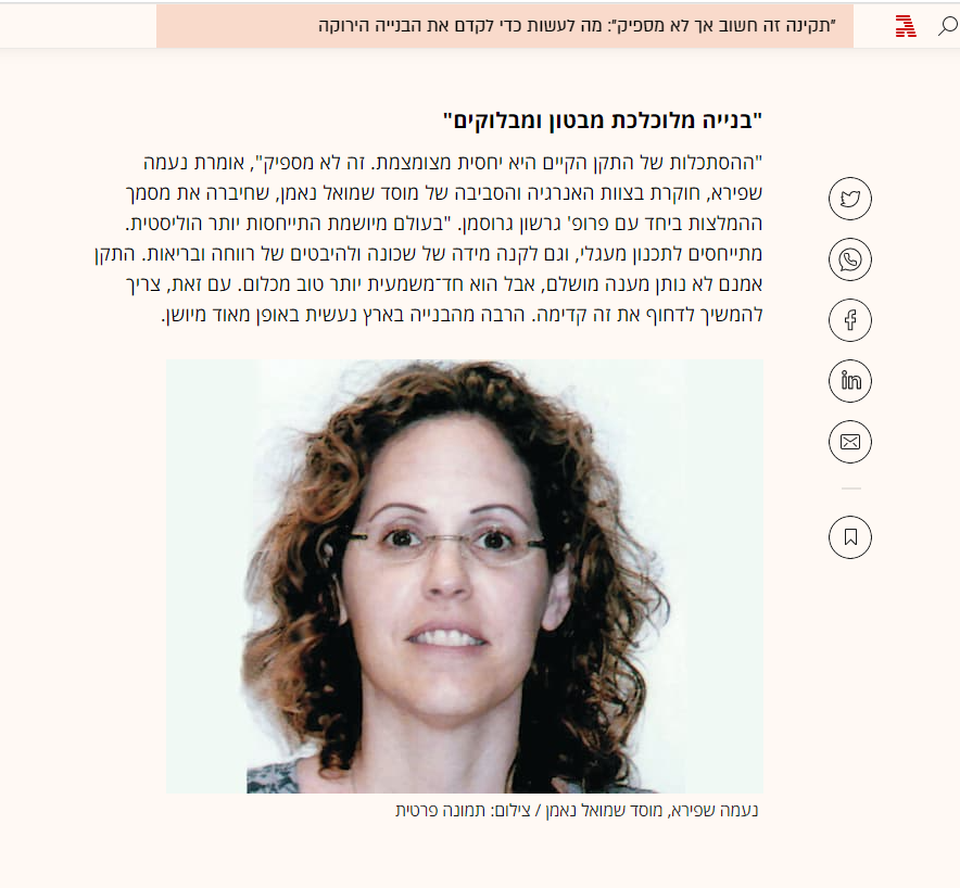 Naama Shapira is a researcher in the fields of environmental and energy policy She holds a law degree from Tel Aviv University, and a Master’s degree in Natural Resources and Environmental Management, specializing in energy management, from the University of Haifa. In her capacity at the Samuel Neaman Institute, Shapira conducts research on diverse aspects of climate change, such as shading, energy sources, runoff management and effects on vulnerable populations. Shapira was a member of the committee of experts that formulated a climate vulnerability index, initiated by the Israeli Association for Ecology and Environmental Sciences with the Ministry of Environmental Protection. She was a member of the research team that advised the Ministry of Environmental Protection on formulating a draft for the Israel Climate Law (2020). She co-manages the voluntary national greenhouse gas registry and the Zero Hour mechanism for the Ministry of Environmental Protection. In addition, she co-manages the Neaman Institute energy forum, establishing fundamental principles to advance contemporary issues within the Israeli energy sector. Naama serves as a researcher in the Energy and Environment cluster.