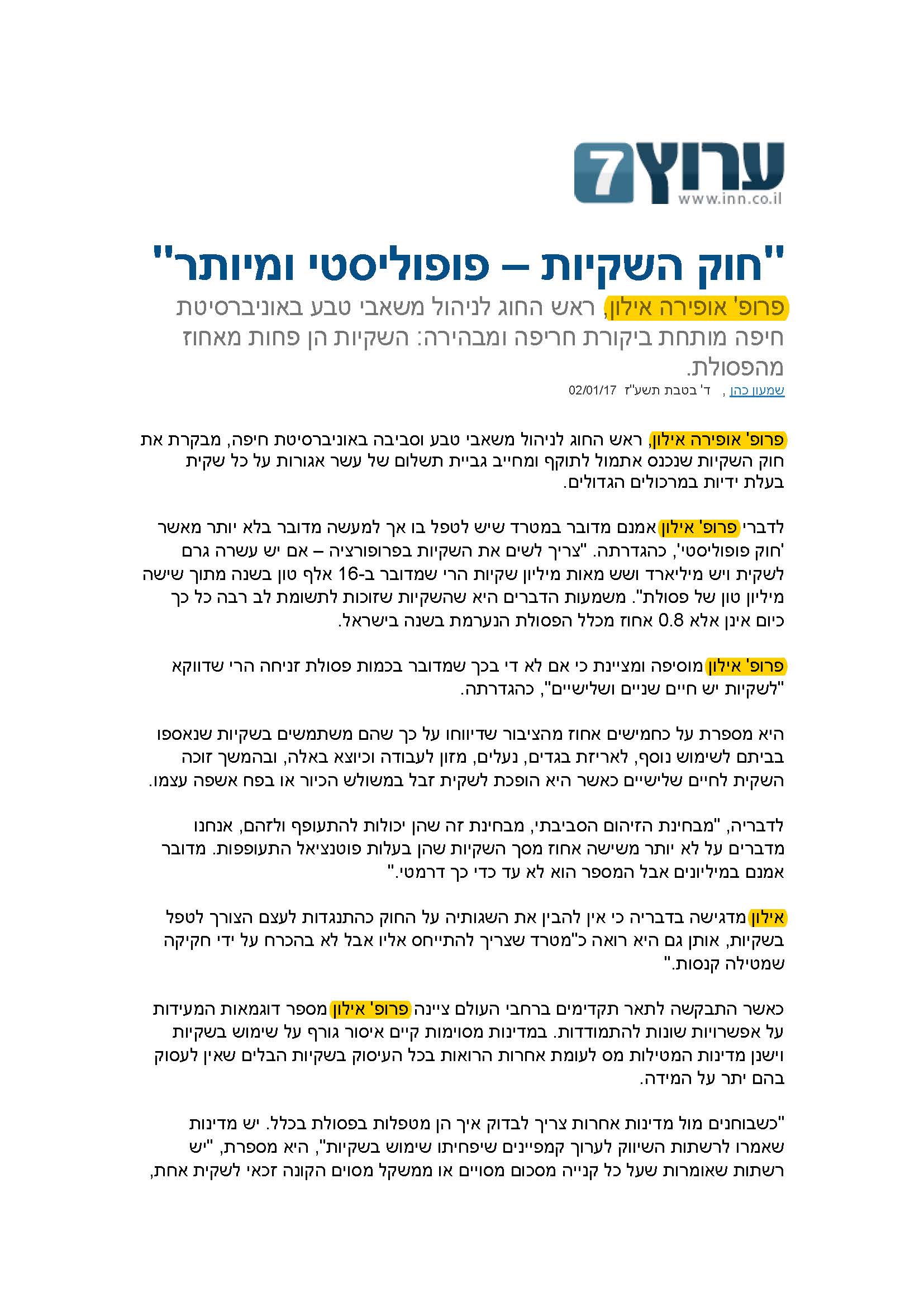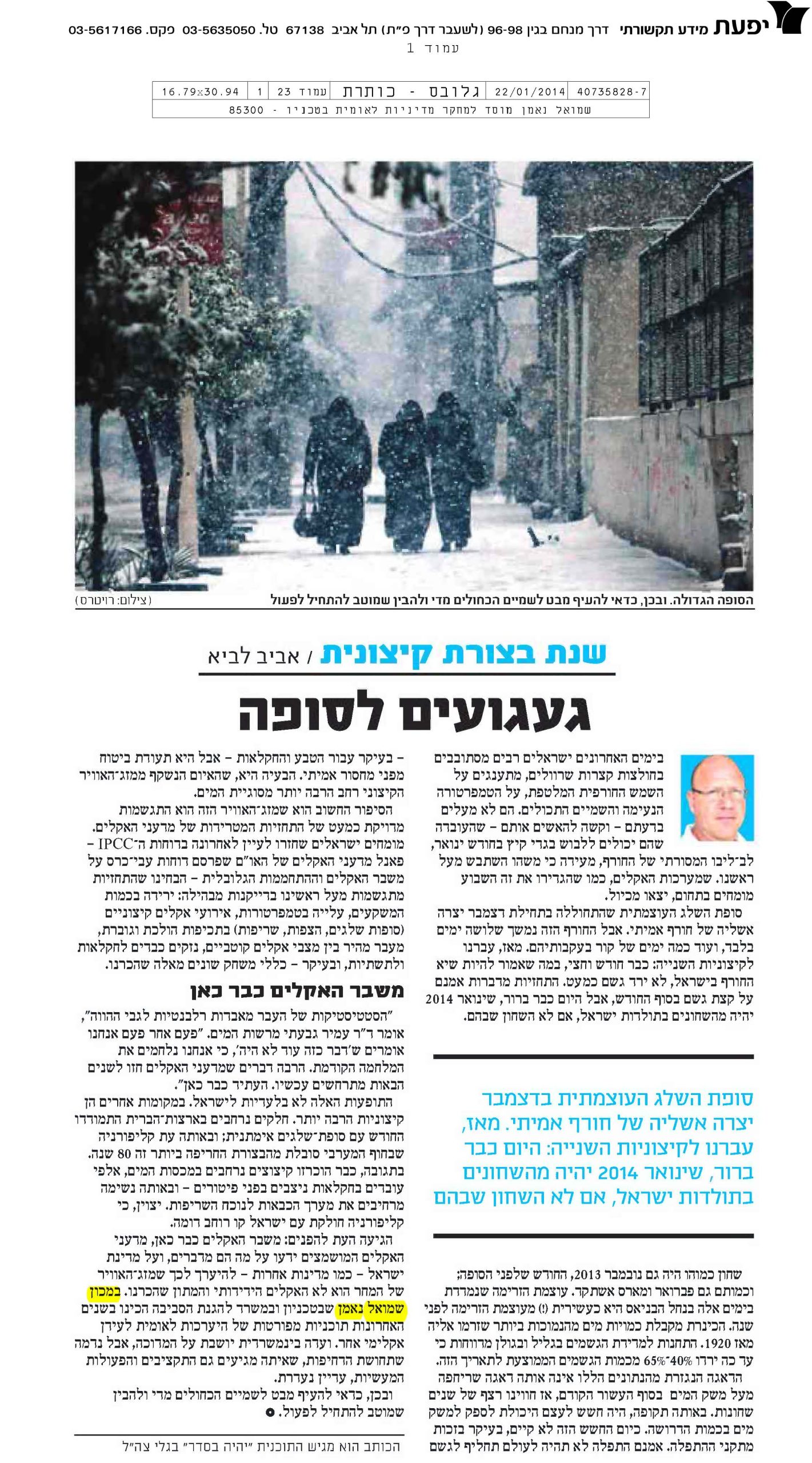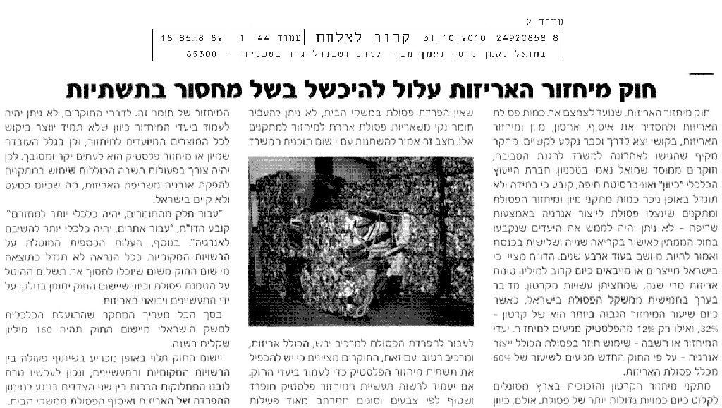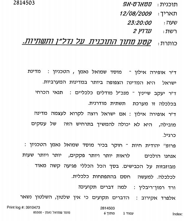 Yitzhak Goren, Ofira Ayalon, Eli Israeli, Yoram Avnimelech, Yaron Arnon, Noam Gressel, Mordechai Shechter