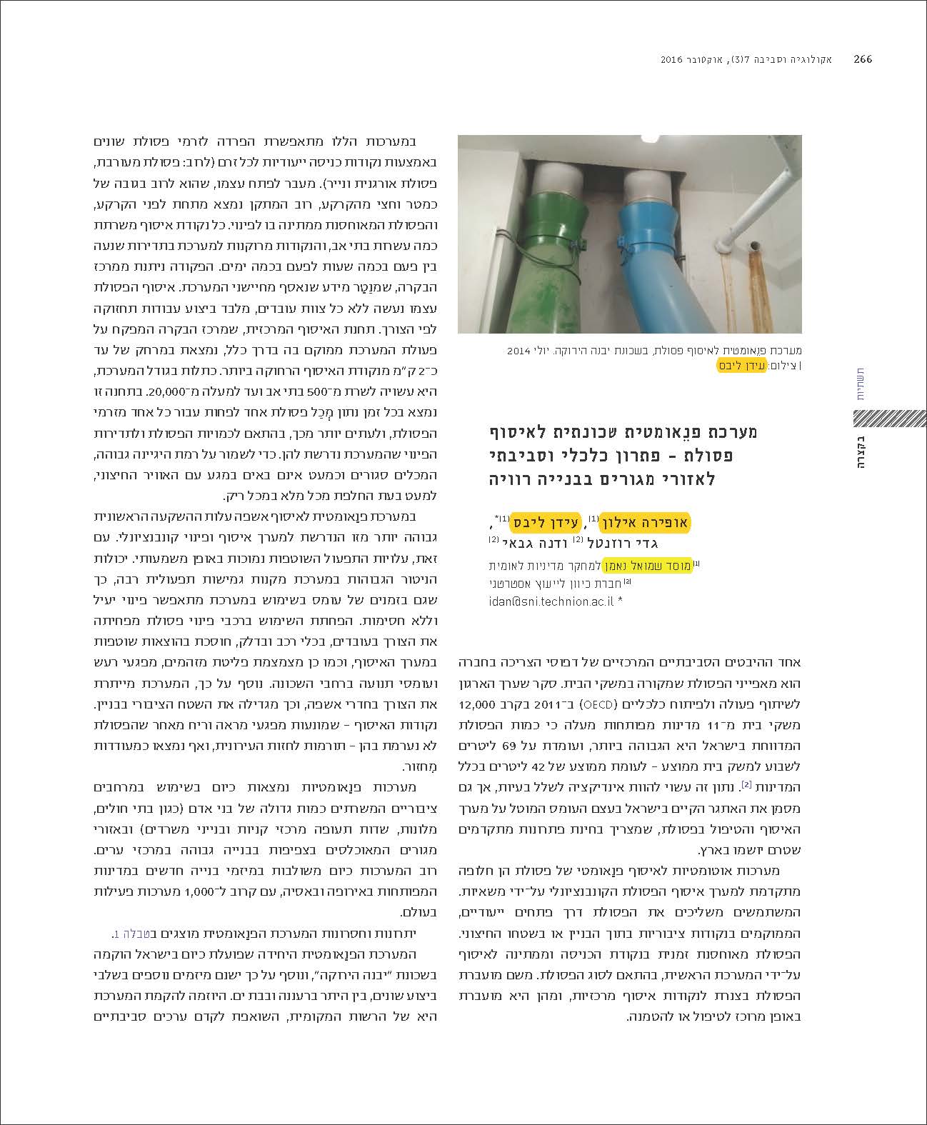 Haim Zaban, Noa Feller, Liron Amdur, Yoram Avnimelech, Ofira Ayalon