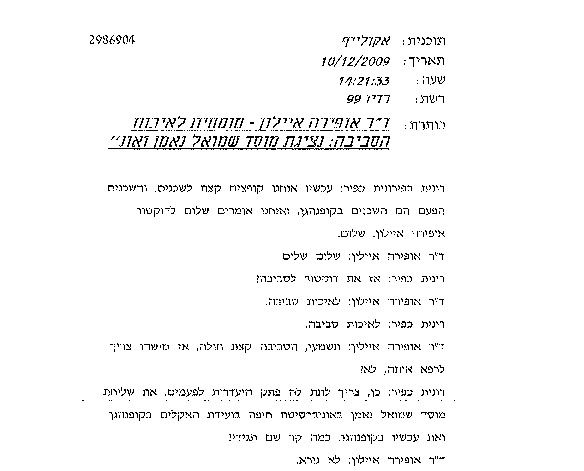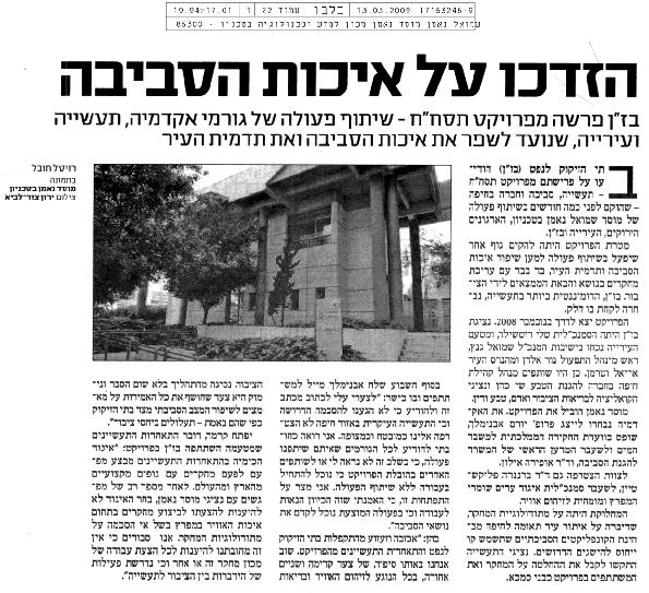 Ofira Ayalon, Gilead Fortuna, Idan Liebes, Shiri Freund-Koren, Gershon Grossman, Avi Temkin, Miriam Lev-On, Perry Lev-On, Efrat Elimelech, Haim Zaban, Eliezer Fruchter, Michal Nachmany, Tal Goldrath, Daphne Getz, Vered Gilad, Eran Leck, Yifaat Baron, Yitzhak Goren, Eli Israeli, Yoram Avnimelech, Yaron Arnon, Noam Gressel, Mordechai Shechter