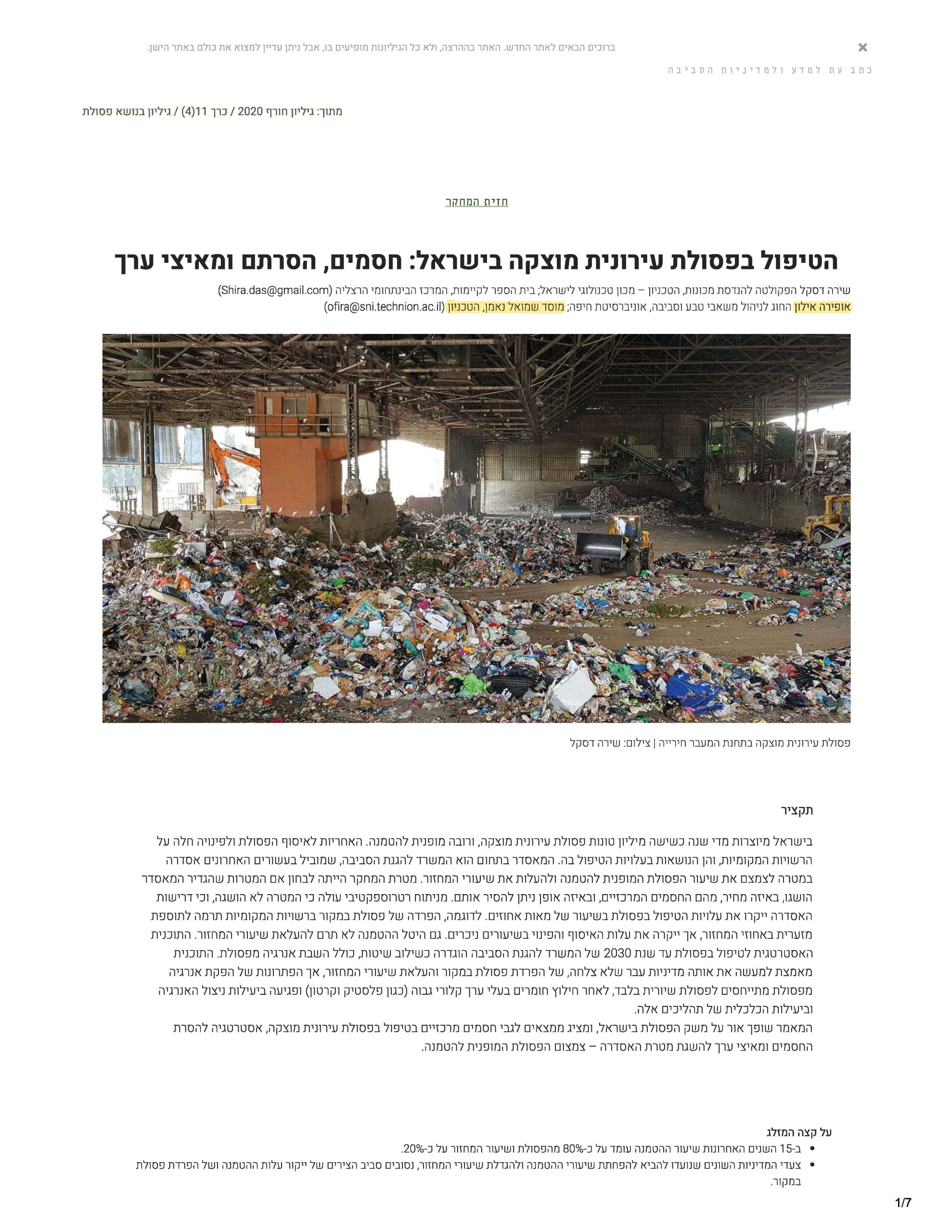 PhD Waste Management, Technion-Israel Institute of Technology