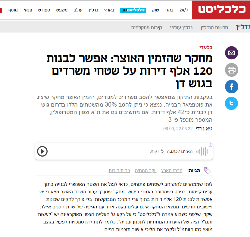 The Ministry of Finance plan: 120,000 apartments on planned office space in Gush Dan