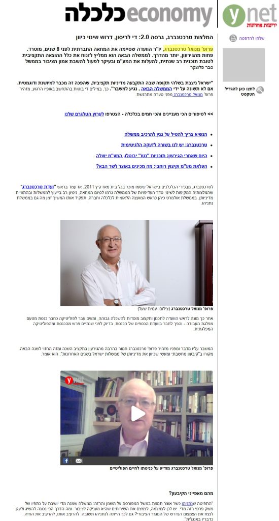 Trajtenberg’s recommendations V 2.0 – calling for a new fiscal policy