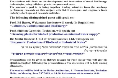 מוסד ש. נאמן למחקר מתקדם במדע וטכנולוגיה בטכניון ויזמת BioNorth מתכבדים להזמינך לסמינר בנושא: BioSensors / חיישנים ביולוגיים הסמינר שיעסוק בחידושים בתחום החיישנים הביולוגיים יתמקד בפיתוח חיישנים חדשניים, בין היתר – שימוש ב’ננו-חומרים’ וב’נ