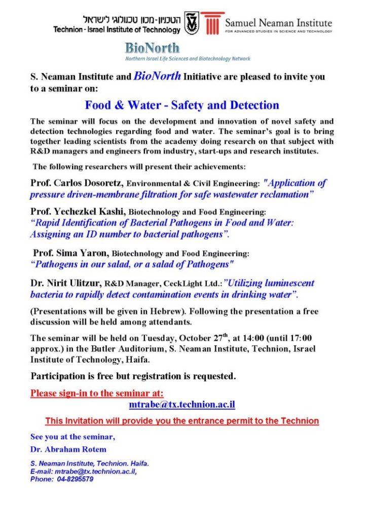 סמינר BioNorth בנושא מים ומזון – בטחון וזיהוי