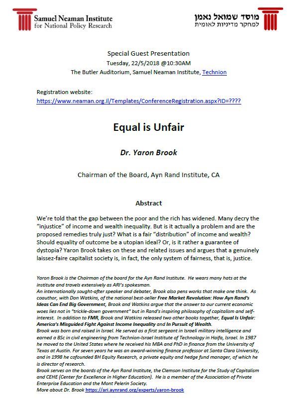 / אירועים / ירון ברוק – שוויון אינו הוגן