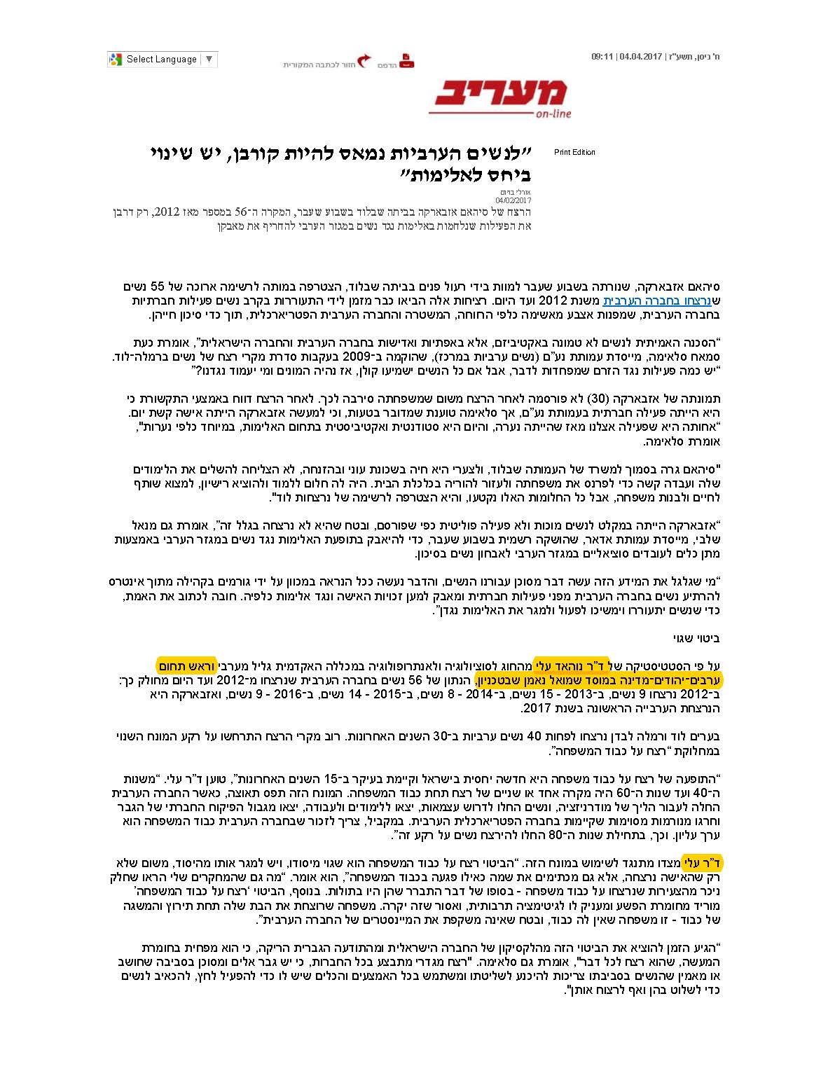 ד”ר נוהאד עלי ראש תחום ההשכלה לקידום חירות שוויון ואחווה.