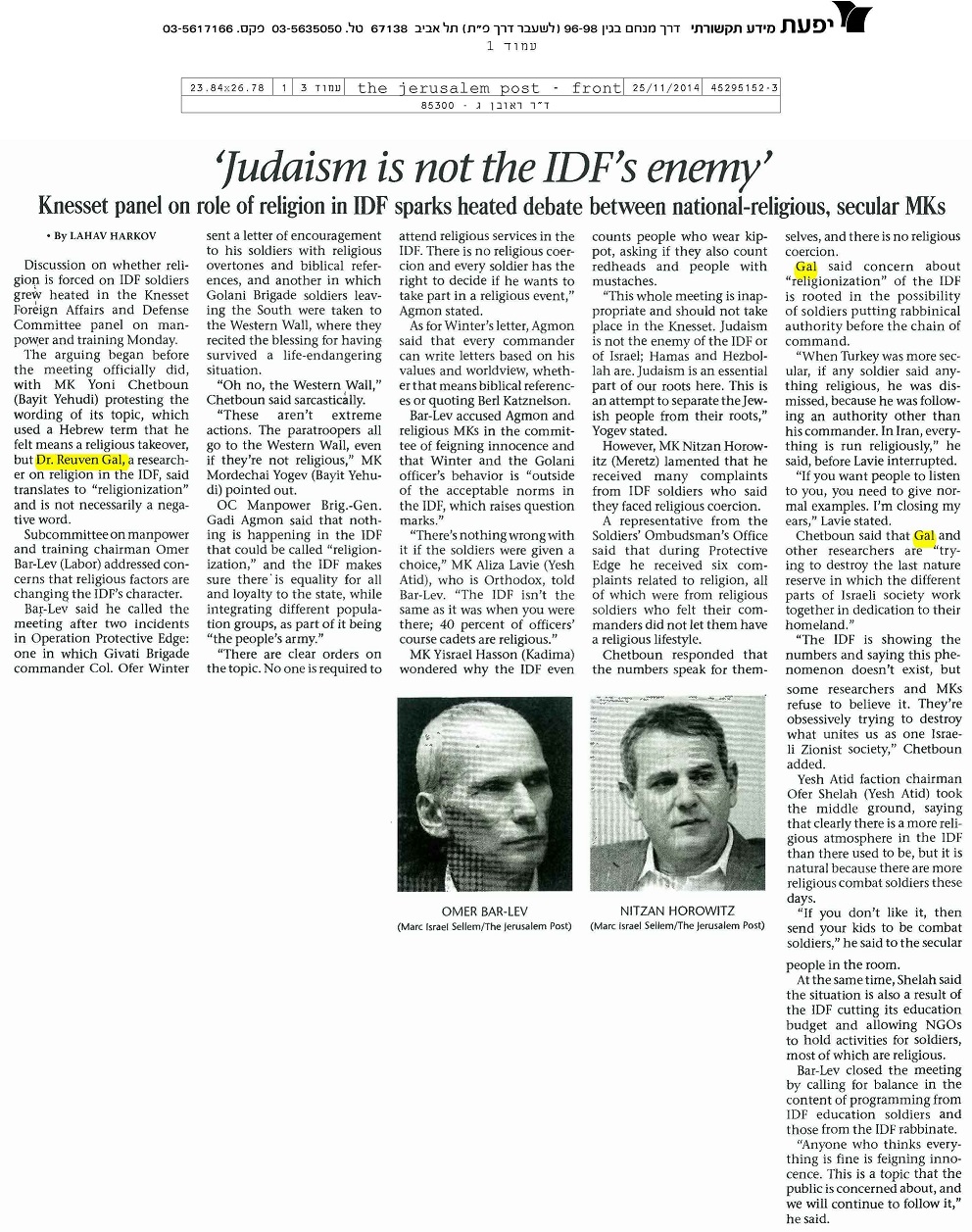 / צוות המחקר / ראובן גל