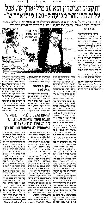 תקציב הביטחון הוא 50 מיליארד ש', אבל עלות הביטחון מגיעה ל-120 מיליארד ש'