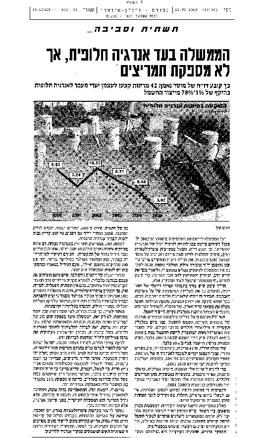 הממשלה בעד אנרגיה חלופית, אך לא מספקת תמריצים