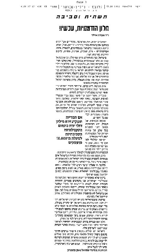 תשתית וסביבה – לא לפספס ההזדמנות