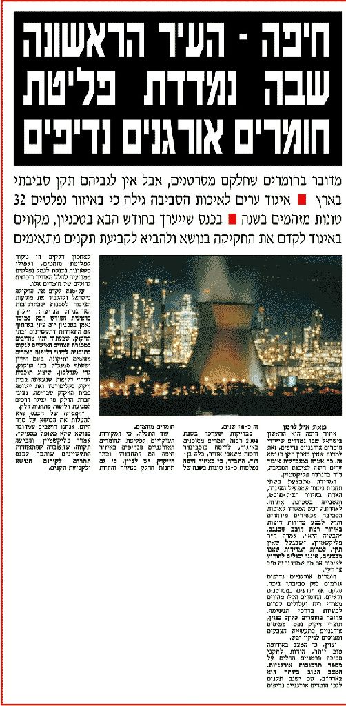 חיפה – העיר הראשונה שבה נמדדת פליטת חומרים אורגנים נדיפים