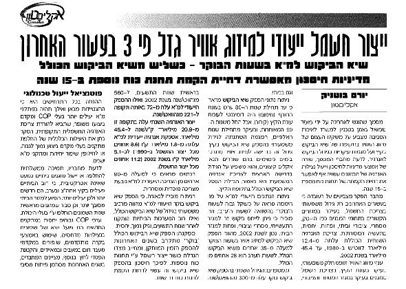 ייצור חשמל ייעודי למיזוג אוויר גדל פי 3 בעשור האחרון