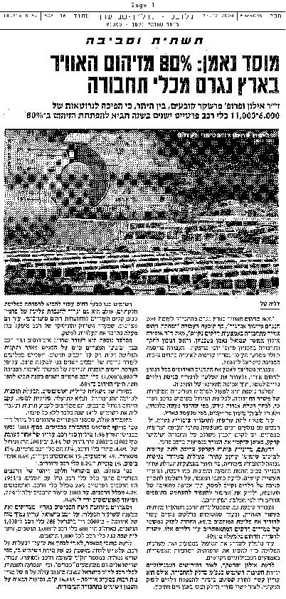 מוסד נאמן: 80% מזיהום האוויר בארץ נגרם מכלי תחבורה