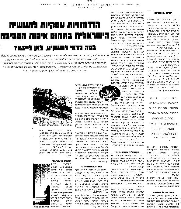 הזדמניות עסקיות לתעשיה הישראלית בתחום איכות הסביבה