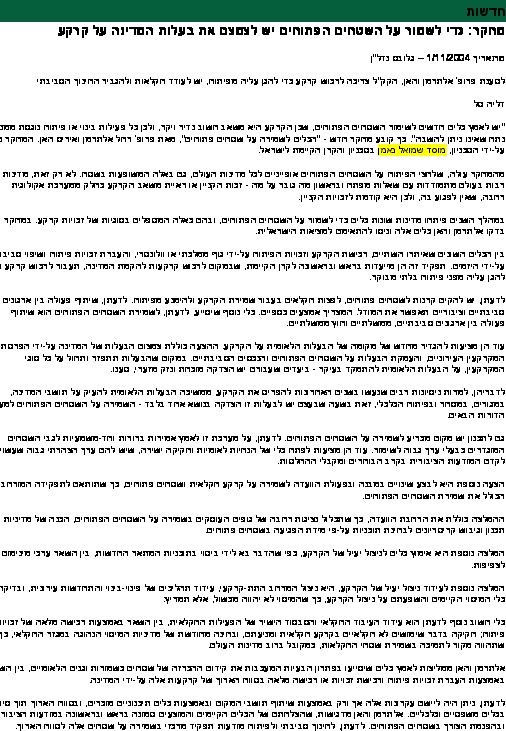 מחקר: כדי לשמור על השטחים הפתוחים יש לצמצם את בעלות המדינה על קרקע