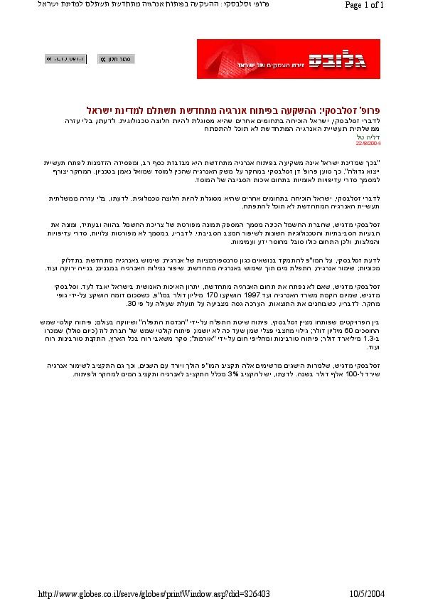 פרופ' זסלבסקי: ההשקעה בפיתוח אנרגיה מתחדשת תשתלם למדינת ישראל