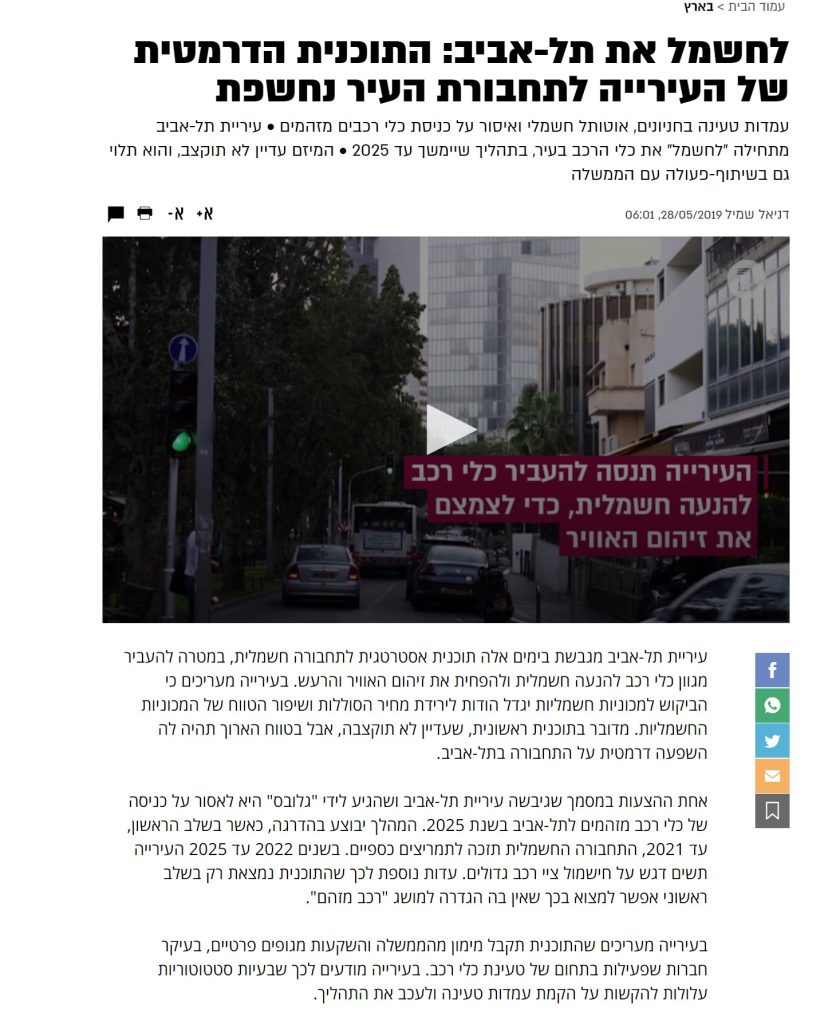לחשמל את תל-אביב: התוכנית הדרמטית של העירייה לתחבורת העיר נחשפת