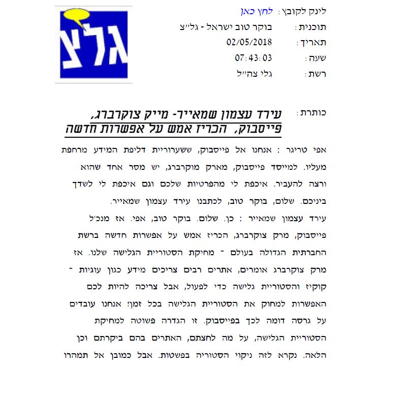 ראיון בגל"צ: פייסבוק הכריזה אמש על אפשרות חדשה