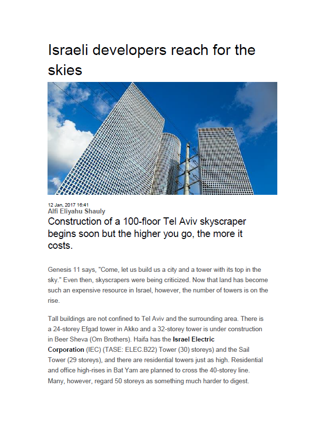 יזמי בנייה ישראלים עולים אל הרקיע