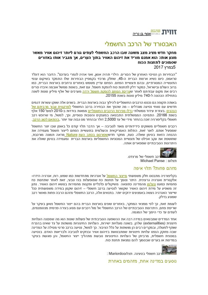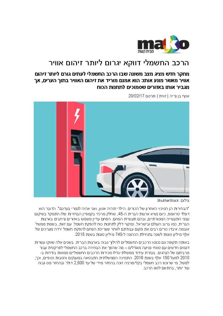 הרכב החשמלי דווקא יגרום ליותר זיהום אוויר