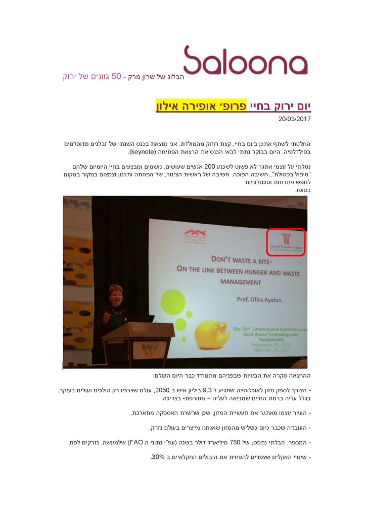 יום ירוק בחיי פרופ' אופירה אילון