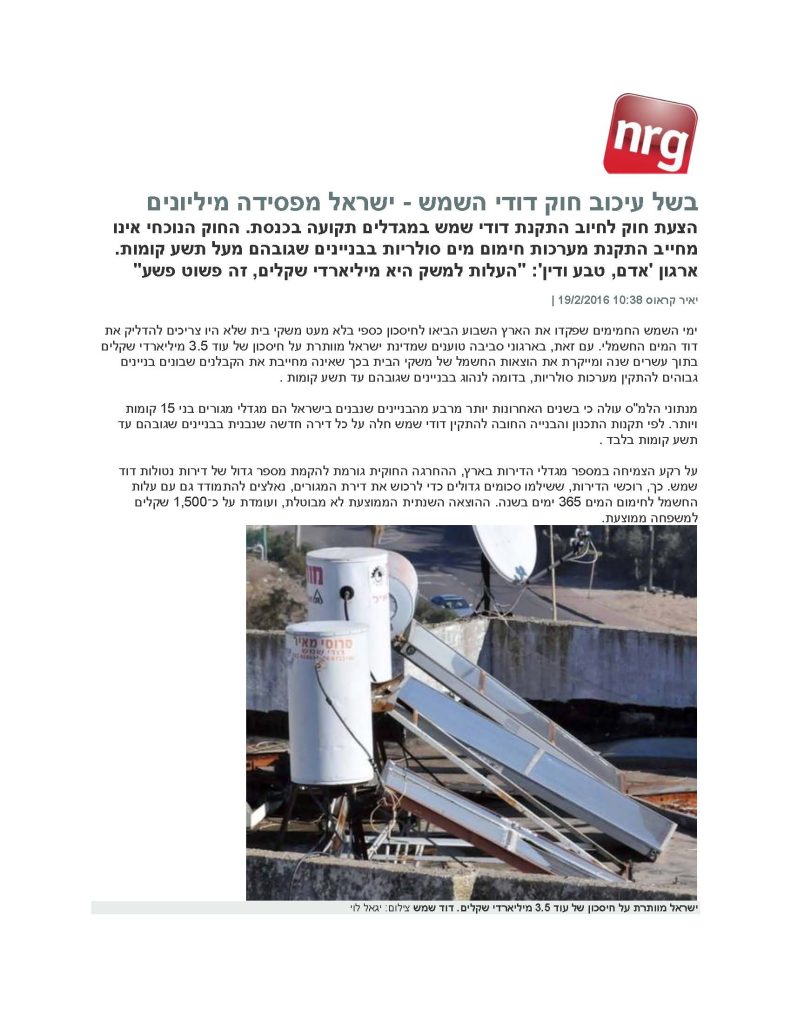 בשל עיכוב חוק דודי השמש – ישראל מפסידה מיליונים