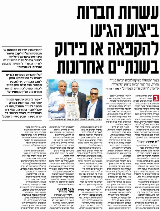 עשרות חברות ביצוע הגיעו להקפאה או פירוק בשנתיים אחרונות