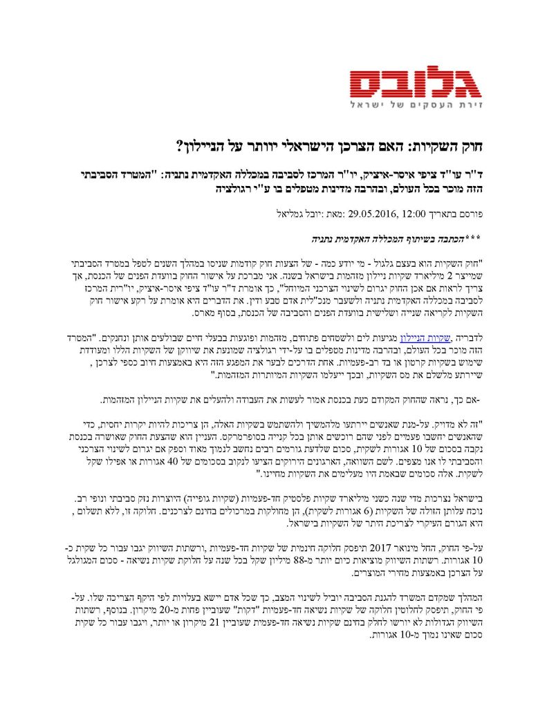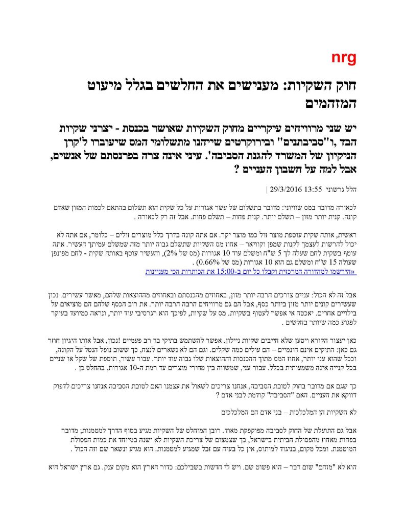 חוק השקיות: מענישים את החלשים בגלל מיעוט המזהמים