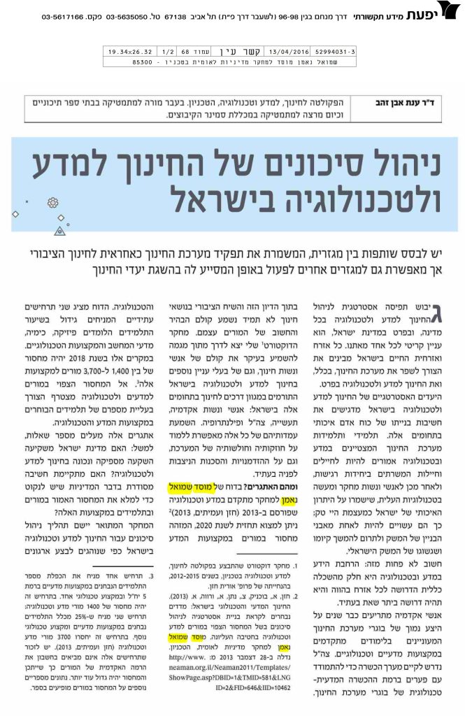 ניהול סיכונים של החינוך למדע ולטכנולוגיה בישראל