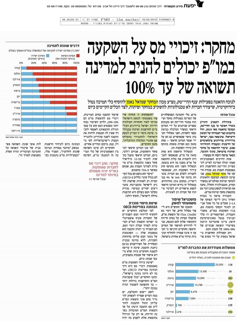 זיכויי מס על השקעה במו"פ יכולים להניב למדינה תשואה של עד 100%