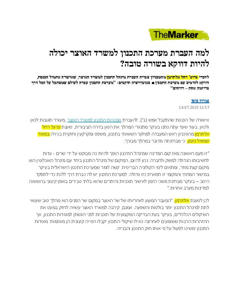 למה העברת מערכת התכנון למשרד האוצר יכולה להיות דווקא בשורה טובה?