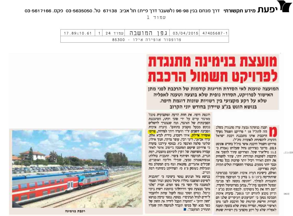 מועצת בנימינה מתנגדת לפרויקט חשמול הרכבת