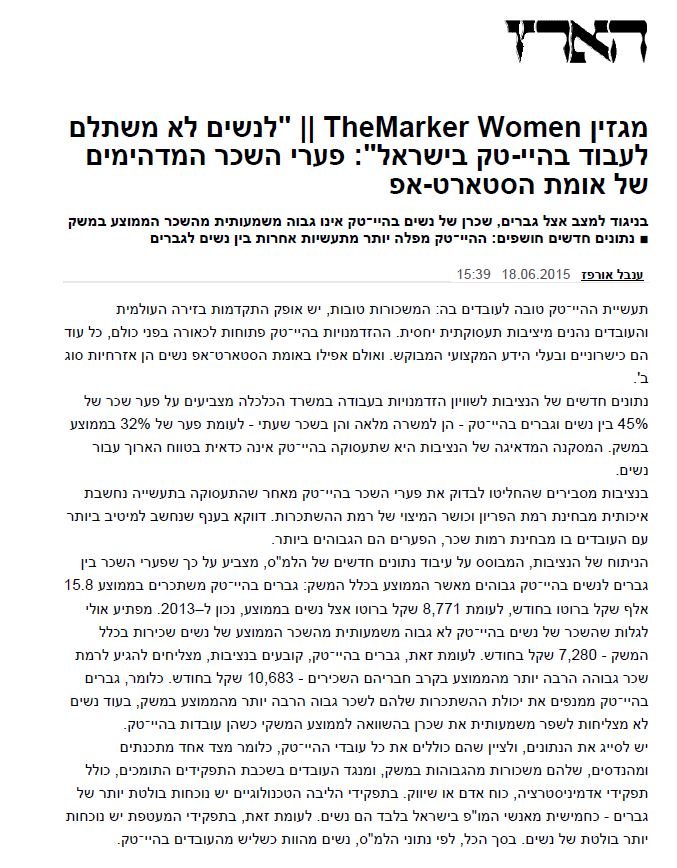 לנשים לא משתלם לעבוד בהיי-טק בישראל: פערי השכר המדהימים של אומת הסטארט-אפ