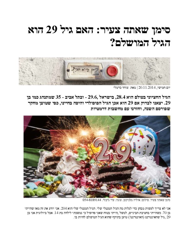 סימן שאתה צעיר: האם גיל 29 הוא הגיל המושלם?