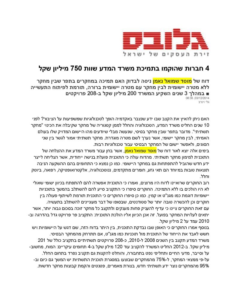 4 חברות שהוקמו בתמיכת משרד המדע שוות 750 מיליון שקל