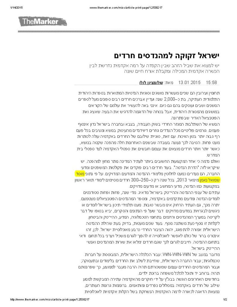 ישראל זקוקה למהנדסים חרדים
