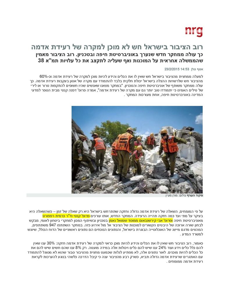רוב הציבור בישראל חש לא מוכן למקרה של רעידת אדמה