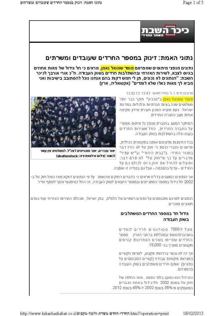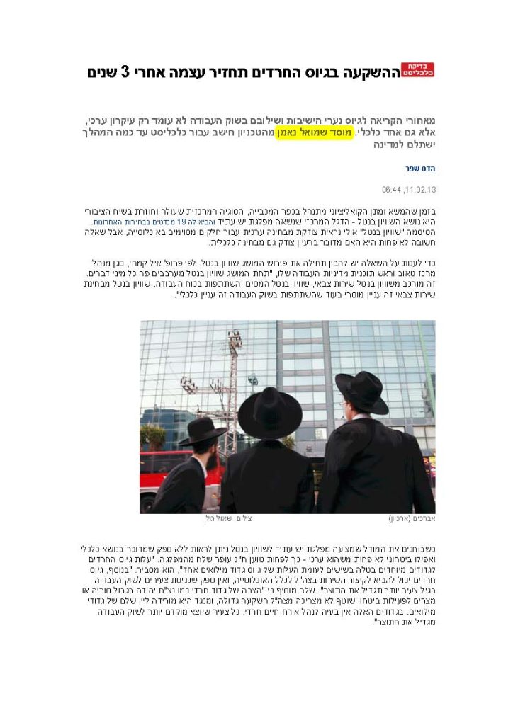 ההשקעה בגיוס החרדים תחזיר עצמה אחרי 3 שנים