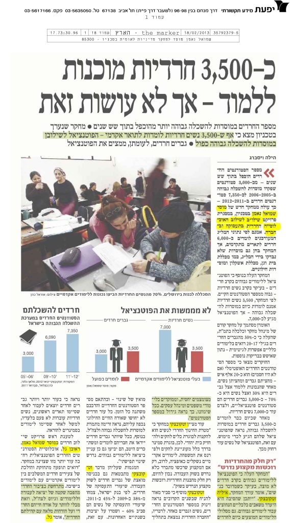 3,500 חרדיות מוכנות ללמוד –אך לא עושות זאת