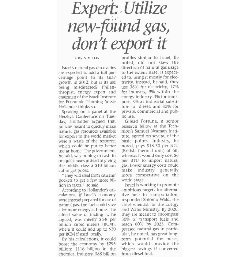 מומחה: נצלו את הגז שנתגלה, אל תייצאו אותו