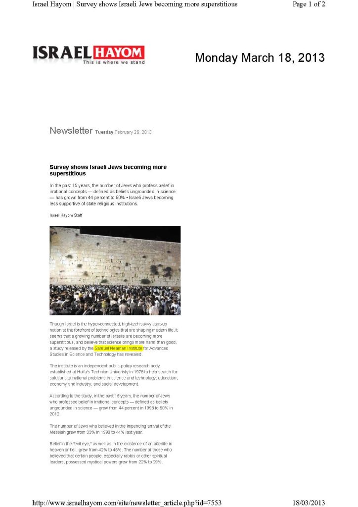 סקר מראה כי יהודים ישראליים מאמינים יותר באמונות תפלות