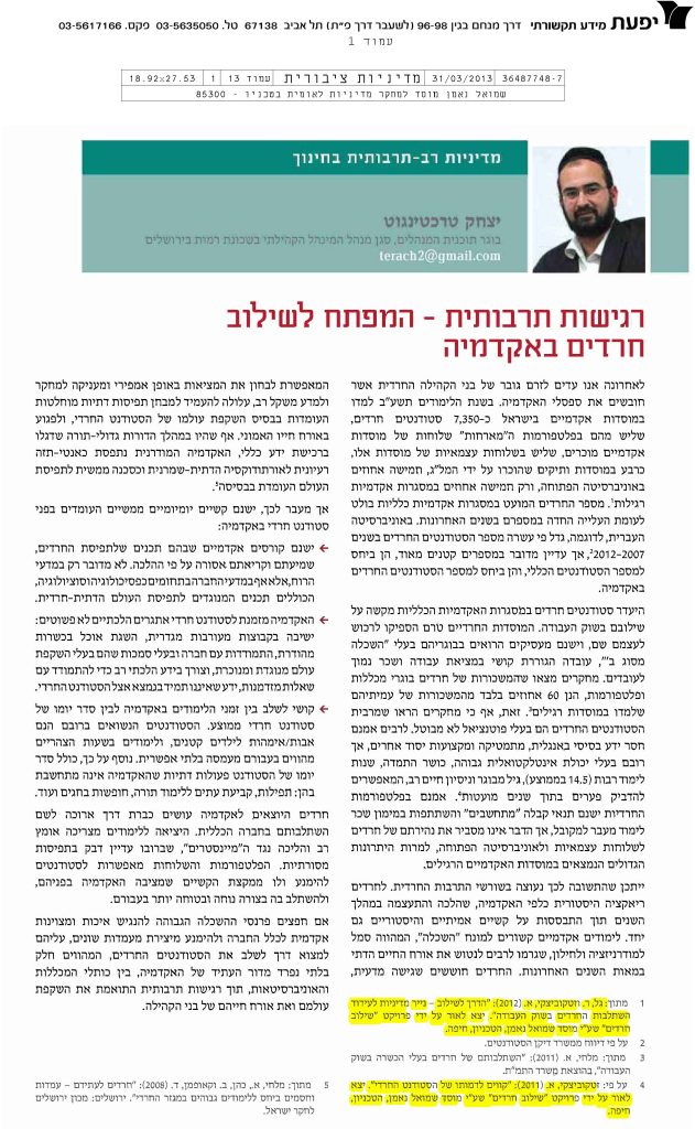 רגישות תרבותית- המפתח לשילוב חרדים באקדמיה