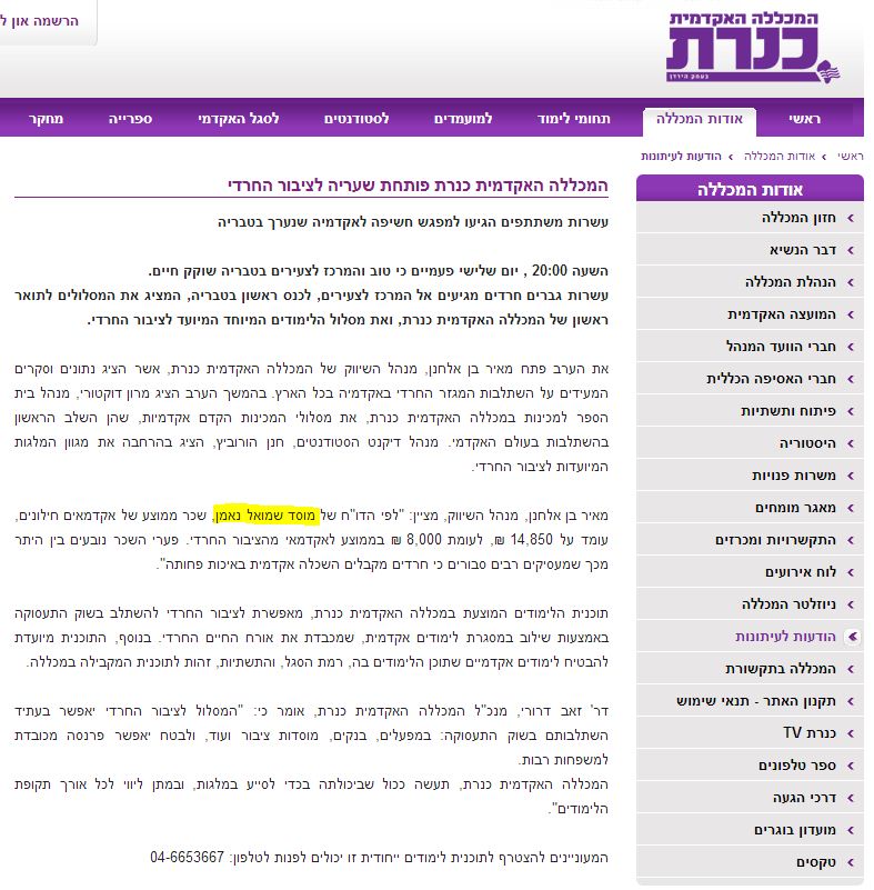 המכללה האקדמית כנרת פותחת שעריה לציבור החרדי