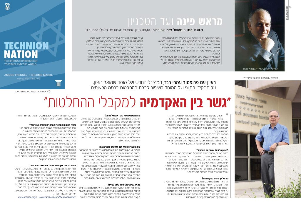 ראיון עם פרופסור עמרי רנד, המנכ" ל החדש של מוסד שמואל נאמן, על תפקידו החיוני של המוסד בשיפור קבלת ההחלטות ברמה הלאומית, במגזין הטכניון