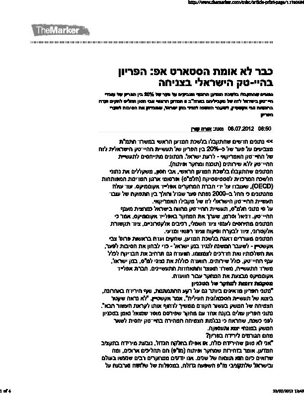 כבר לא אומת הסטארט אפ: הפריון בהיי-טק הישראלי בצניחה